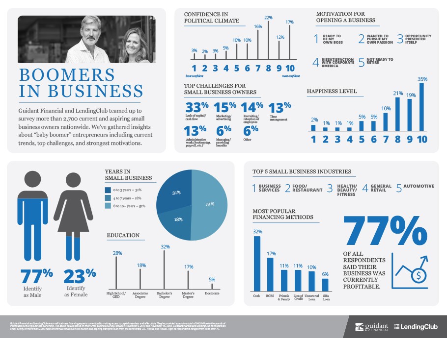 - Seventy seven percent of baby boomer business owner respondents reported that their businesses were profitable.